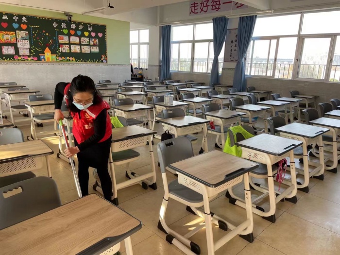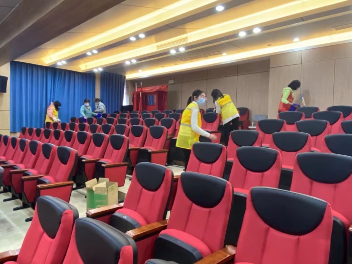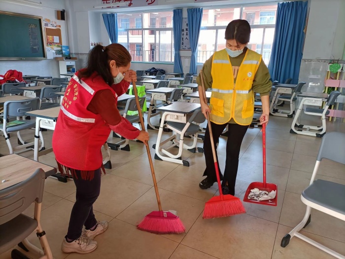 活動中,教師們身穿紅色和橙色的志愿者服裝,紛紛拿起掃帚、垃圾鏟、拖把、抹布等清潔工具,在小組長的帶領下到達相關室場。一到室場,教師們熱情高漲,積極投入各項衛(wèi)生清潔工作中。教師們不怕臟不怕累,不放過任何一個衛(wèi)生死角的清潔和消毒。校園里,到處可見紅色或者黃色的美麗身影,有的在報告廳打掃屏幕,有的在乒乓球室清理桌臺,還有的在圖書室整理各類書籍,教師們用辛勤勞動為共建美麗校園發(fā)光發(fā)熱,用自己的實際行動表達著對學校的熱愛,這也成為了大豐校園里一道紅橙相映的美麗風景。各活動室場的清潔結(jié)束后,班主任老師攜手副班主任老師,繼續(xù)回到自己的班級打掃教室衛(wèi)生。教室里,走廊外,隨處可見教師們勤勞的身影。他們互幫互助,齊心協(xié)力,忙碌著也快樂著,勞累著也幸福著......