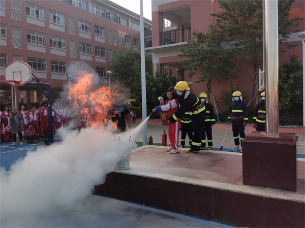 隨后,社區(qū)消防隊(duì)來(lái)到現(xiàn)場(chǎng)為同學(xué)們?cè)敿?xì)介紹和演示了滅火器的使用方式,還向同學(xué)們展示了消防車(chē)的裝備,這一堂生動(dòng)的消防安全教育課,不但強(qiáng)化了師生們的消防安全意識(shí),還提高了師生的應(yīng)變能力。