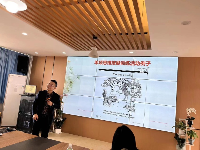 緊接著,與會領導嘉賓做表態(tài)性發(fā)言。廣東省外語藝術職業(yè)學院譚偉民教授肯定了工作坊開展的豐富多彩的研修活動以及取得的優(yōu)異成績。在會上他作了題為《指向核心素養(yǎng)的英語課程教學改革路徑探索》的微講座,深入淺出地為港口工作坊成員的教學和研究指明了方向。中山市教育教學研究室小學英語教研員辛鍵老師祝賀港口工作坊取得豐碩的階段性成果,勉勵學員們要勤學善思,躬體力行,期待大家佳績頻傳。港口鎮(zhèn)教育和體育事務中心張育文主任作了最后總結發(fā)言,鼓勵大家面對不足,越戰(zhàn)越勇,為港口教育作出實在的成績。
