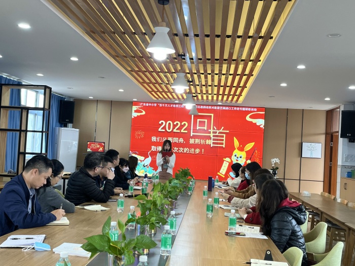 歲月鎏金,華章日新。轉眼間2023年新年已至?;厥?022,初心如磐!展望2023年,奮楫篤行!1月12日上午,百千萬人才培養(yǎng)工程梁藝娟名師港口工作坊在中山市實驗小學教育集團大豐小學舉行了2022年復盤總結會議。出席本次會議的嘉賓有廣東省外語藝術職業(yè)學院譚偉民教授、中山市教育教學研究室辛鍵老師、港口鎮(zhèn)教育和體育事務中心張育文主任和教研專干吳濤濤老師、中山市實驗小學教育集團大豐小學黃艷冰校長和部分行政老師們。大豐小學英語科組的老師們參加了本次會議。