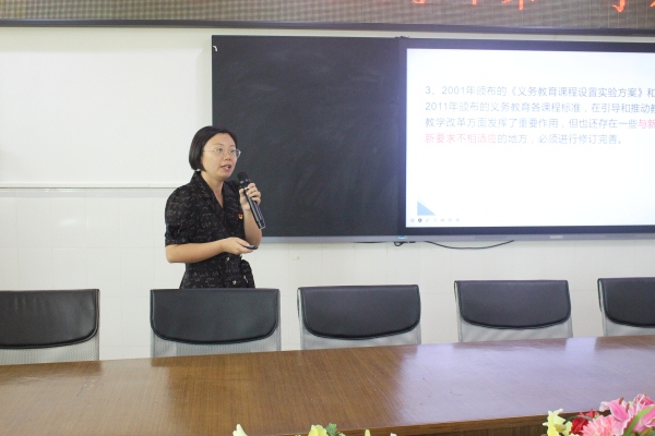 接著唐旭華副校長給老師們進行校本培訓。她從課程方案和標準修訂的背景與意義、課程方案以及課程標準三個方面給全體教師做了具體的解讀。要求老師們認真理解新課標,深入研討如何在教學中實踐新課標,要時刻做到心中有“標”, 以理論指導課堂,將新的教學理念貫穿于日常的教育教學實踐中,著力構建以學生發(fā)展核心素養(yǎng)為目標的高效課堂。