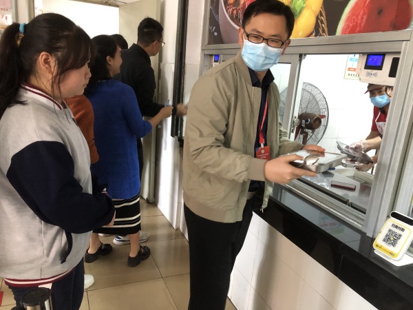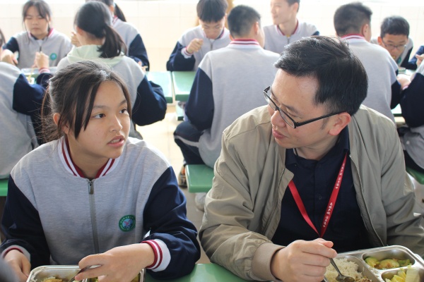 中午,檢查組一行在學校飯?zhí)眠M行陪餐。與學生一起排隊打卡取餐,并與學生一起進餐,親切交談。用餐期間,周昭堅鎮(zhèn)長親切詢問了就餐學生對飯?zhí)玫牟似贰⑽兜赖囊庖?,并提醒學生要注意營養(yǎng)搭配,避免浪費。