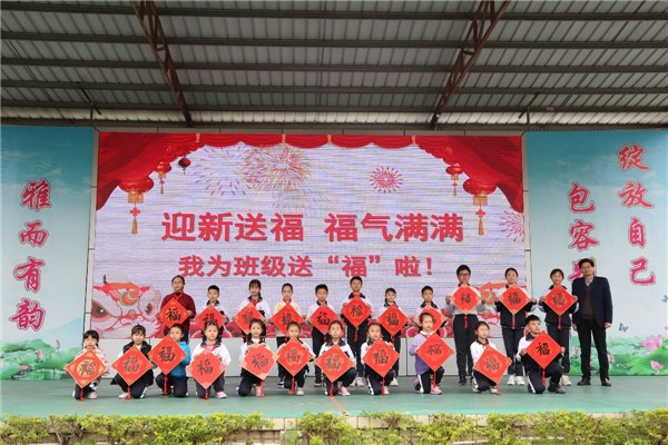 本次活動(dòng)由吳高欣老師主持。首先,師生一起認(rèn)真觀看了視頻《2021,了不起的你》,共同回味2021年那些獨(dú)一無(wú)二的記憶,讓人眼眶濕潤(rùn)、心潮澎湃。然后,由林宗技校長(zhǎng)作新年致辭,林校長(zhǎng)先向全體師生表達(dá)了最誠(chéng)摯的慰問(wèn)和最衷心的祝福,對(duì)師生們的年度表現(xiàn)進(jìn)行了總結(jié),他高度肯定了全校師生的辛勤耕耘,對(duì)師生們?nèi)〉玫睦劾鄞T果表示祝賀,并對(duì)即將到來(lái)的2022年提出了殷切的期望。接著,由五(3)班的梁穎怡、林偉烯兩位同學(xué)帶來(lái)了《揮別2021,展望2022》精彩的演講,他們以聲傳情、聲情并茂,展現(xiàn)了新時(shí)代少先隊(duì)員對(duì)未來(lái)的美好憧憬。然后,四3班的同學(xué)們?yōu)槊總€(gè)班級(jí)以及所有老師送上用心用情書(shū)寫(xiě)的中國(guó)“福”,一個(gè)個(gè)“?!弊诛柡钌钭T福粚W(xué)校全體行政為各班贈(zèng)送了新年愿景卡,每個(gè)同學(xué)臉上洋溢著喜悅的笑容。緊接著,由德育處桂玉盛主任給全體師生進(jìn)行安全教育,他從消防安全、交通安全、網(wǎng)絡(luò)安全、防踩踏安全、防疫安全、防詐騙(拐騙)安全、食品安全等方面向大家提出了要求和建議,提醒全體師生在元旦放假期間要提高自我保護(hù)意識(shí),時(shí)刻把安全放在首位。