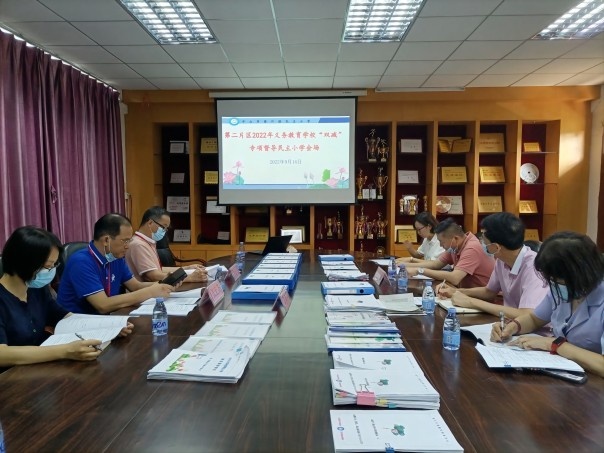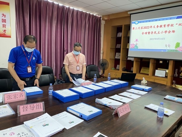 為了進一步指導學校規(guī)范辦學行為,落實“雙減”工作,進一步做好2022年秋季學期疫情防控工作,9月14日上午,民主小學迎來第二片區(qū)2022年義務教育學?!半p減”專項督導檢查,督導組專家小欖鎮(zhèn)教育和體育事務中心的張宏齊副主任、李正可校長、陳凱冰主任到學校進行實地督導檢查工作。民主小學黨支部書記、校長林宗技及學校行政團隊全程陪同檢查。