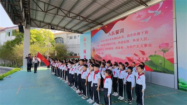 少年兒童是祖國的未來,為慶祝中國少年先鋒隊建隊73周年,增強學校少先隊組織力量,10月13日,民主小學舉行二年級第二批新隊員入隊儀式。