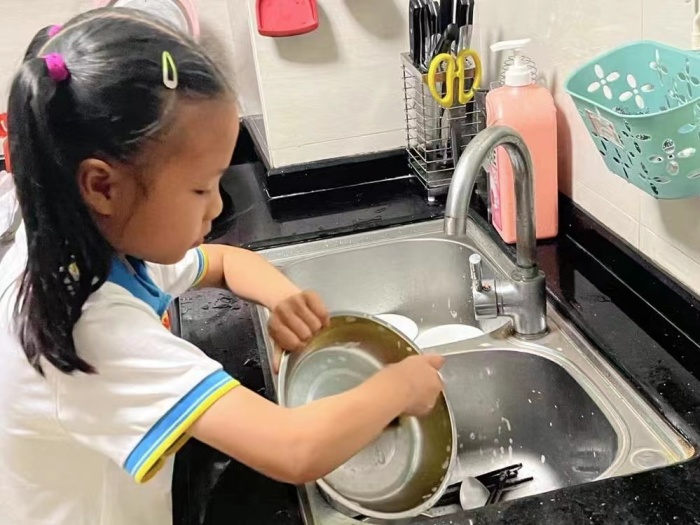為了進(jìn)一步凈化美化校園,營造人人參與“愛班級愛集體”的良好氛圍,各班的學(xué)生和家長志愿者利用假期給班級來個徹徹底底的清掃。孩子們擦拭桌椅、清洗窗簾、掃地拖地等等,做自己力所能及的事情。家長們則拆洗風(fēng)扇、清洗墊子、擦窗戶等,他們不辭辛苦、毫無怨言,給孩子樹立了一個熱愛勞動的榜樣。另外,孩子們也將勞動精神滲透進(jìn)日常起居生活中。他們在家里既拿得了鍋鏟烹飪,也拿得了拖把掃帚;既能洗衣疊被,又能抹柜擦窗;既能照料花草,又能照顧弟妹……個個都是勞動小能手。