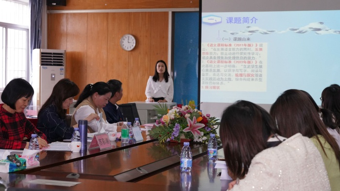 隨后,課題負責人蘇淑憶老師作課題中期匯報,對課題目前的研究情況作介紹,主要從課題由來、研究目標與內(nèi)容、研究現(xiàn)狀及階段性成果等作詳細闡述。