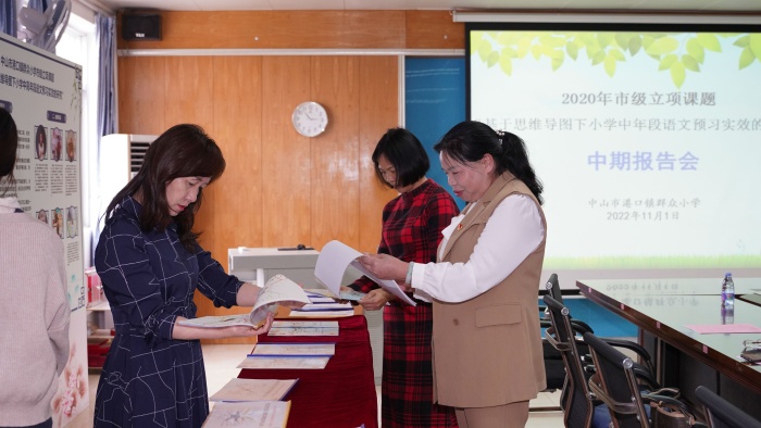 “船到中流浪更急,人到半山路更陡”。為更好地總結(jié)課題研究階段性開展情況,提煉成果,明晰課題后期研究方向,及時做出反思、歸納、深化、細化,2022年11月1日下午,港口鎮(zhèn)群眾小學2020年市級立項課題“基于思維導圖下小學語文中高年段語文預習實效的研究”中期報告會在學校會議室舉行。中山市課題專家、廣東省特級教師、中山市實驗小學吳海飛主任,課題管理人梁文玲老師,港口鎮(zhèn)教育和體育事務(wù)中心蘇彩南老師及兄弟學校的同行們到校指導;港口鎮(zhèn)群眾小學梁銓華校長、蘇小蓉副校長,課題組全體成員及語文科組全體老師參加了本次活動。