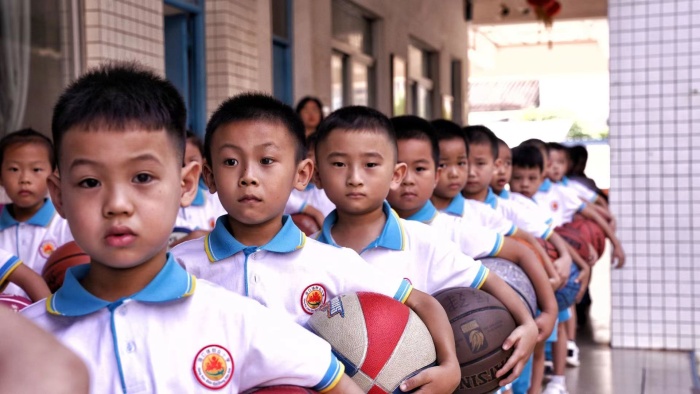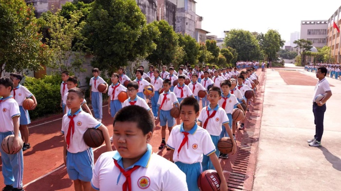 易副鎮(zhèn)長(zhǎng)觀看了學(xué)校陽光大課間活動(dòng)。伴隨著歡快而富有節(jié)奏的音樂聲,全校同學(xué)精神抖擻,左手抱著籃球,邁著堅(jiān)定的步伐,排著整齊的隊(duì)伍小跑進(jìn)入操場(chǎng),展示學(xué)校特色項(xiàng)目“酷炫籃球”籃球操。同學(xué)們氣勢(shì)高昂、動(dòng)作規(guī)范一致。組合巧妙和編排精心的籃球操,不僅向我們展示了籃球運(yùn)動(dòng)的特點(diǎn),更是在音樂的襯托下呈現(xiàn)出韻律美。老師們也與學(xué)生一起運(yùn)動(dòng),展現(xiàn)出了群眾小學(xué)師生團(tuán)結(jié)和諧、積極向上的精神面貌。