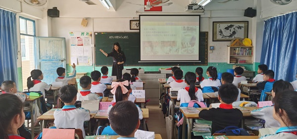 當天下午,蘇書記走進了四(1)班,為學生、黨員、思政課任課老師上了一節(jié)思政課,主題是四年級《道德與法治》下冊“有多少浪費可以避免”。課堂上,一張張同學們倒掉午餐飯菜,浪費食物的照片拉開了序幕。同學們朗誦了膾炙人口的《憫農》,既讀出了農民勞動的艱辛,也懂得了要厲行節(jié)儉、杜絕浪費。緊接著,蘇書記假設一人一天浪費50克大米,引導同學們計算出一個班級一天浪費的量、一年浪費的量,全校一年浪費的量,以及全校一年浪費的量可供多少人吃一個月。一個個驚人的數(shù)字,形象地詮釋了“聚沙成塔,防微杜漸”的道理。隨后,她因勢利導讓學生尋找生活中的浪費現(xiàn)象,并討論要如何做到不浪費。同學們紛紛打開話匣子,各抒己見,分享著自己的感想,和杜絕浪費的好做法。最后,蘇書記更以短小精悍的公益廣告倡導大家做厲行節(jié)約的踐行者、示范者、推動者,做到小手拉大手,將勤儉節(jié)約思想傳遞給更多人。