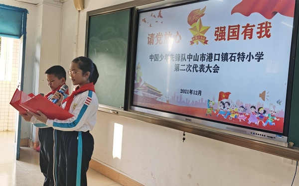 顆顆童心凝聚在一起,星星火炬閃耀著光芒,在中國共產(chǎn)黨的帶領(lǐng)下,中國少年先鋒隊走過了72年的光輝歷程。為深入貫徹落實習近平總書記關(guān)于少年兒童和少先隊工作的重要指示精神,推動黨建帶隊建機制,增強少先隊員的光榮感,12月9日下午,中國少年先鋒隊中山市港口鎮(zhèn)石特小學第二次代表大會勝利召開。港口鎮(zhèn)團委書記、港口鎮(zhèn)少工委主任李冠良、港口鎮(zhèn)少工委副主任夏榮、學校少工委領(lǐng)導、家委會代表、輔導員代表和少先隊員代表共同參加大會。