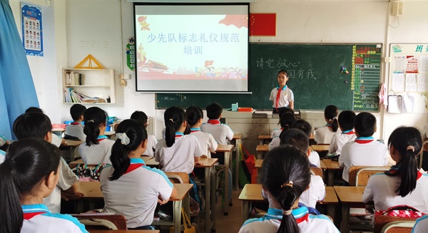 活動前夕,各中隊開展了“少先隊標(biāo)志禮儀規(guī)范”隊課,由各中隊長主持,引導(dǎo)隊員們再次認(rèn)識隊旗、隊徽,學(xué)習(xí)佩戴紅領(lǐng)巾,練習(xí)敬隊禮、呼號,熟悉隊歌、誓詞。