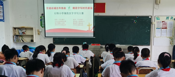 為進一步提高學生的語言文字規(guī)范意識、推普參與意識,建構優(yōu)美、規(guī)范、生動的語言環(huán)境,引導每個孩子想說、敢說、會說普通話,形成共同說好普通話的校園氛圍,9月13日至23日,石特小學開展了以“普通話誦百年偉業(yè),規(guī)范字寫時代新篇”為主題的推普周系列活動。