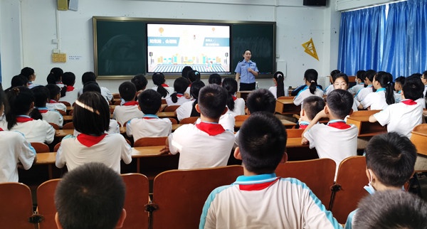 劉警官用通俗易懂的語言,從“認識交通”“安全步行”“安全乘車”等方面詳細講解了道路安全的相關(guān)知識,講述交通違法行為的危害性。同時,劉警官還播放了學(xué)生道路交通事故典型案例視頻,通過視頻向同學(xué)們展示了汽車盲區(qū)、路上文明交通行為等知識,引導(dǎo)同學(xué)們在平時生活中要自覺做到“知危險、會避險”,自覺遵守交通規(guī)則,牢固樹立交通法規(guī)意識。全場同學(xué)聽得非常認真,并積極參與互動,現(xiàn)場氣氛非常熱烈,大家紛紛表示以后一定自覺遵守交通法規(guī),安全出行,努力做好小小宣傳員。