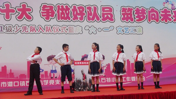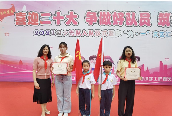 萬木蔥蘢,惠風(fēng)和暢。為了喜迎黨的二十大勝利召開,增強少先隊員的組織歸屬感,為全校師生搭建展示個性特長的舞臺,5月30日下午,石特小學(xué)舉行了“喜迎二十大 爭做好隊員 筑夢向未來”2021級少先隊入隊儀式暨“六一”文藝匯演活動。出席活動的嘉賓、領(lǐng)導(dǎo)有:港口鎮(zhèn)體育和教育事務(wù)中心劉憲軍主任,石特社區(qū)黨委副書記梁偉權(quán),石特社區(qū)黨委委員黃麗娟,石特社區(qū)關(guān)工委成員、退休教師吳錦洪老師,石特社區(qū)關(guān)工委成員、穗安村小學(xué)退休教師梁添勝老師,石特小學(xué)黨支部書記、少工委主任蘇少麗校長,學(xué)校德育處梁森明主任,學(xué)校教務(wù)處吳偉卿主任,學(xué)校德育處原家惠副主任。