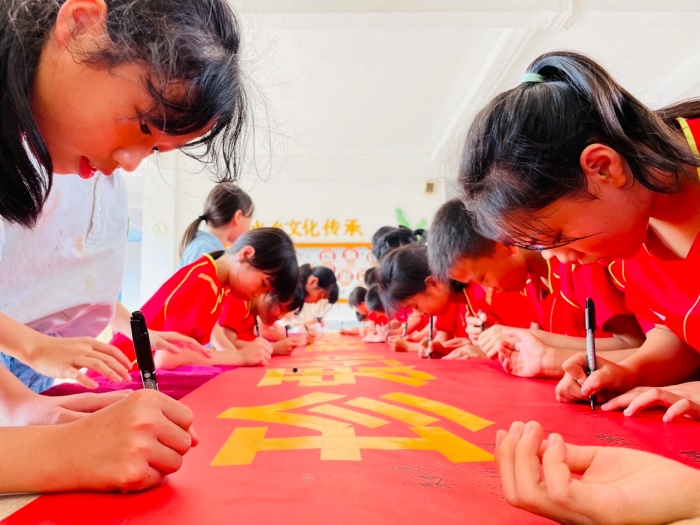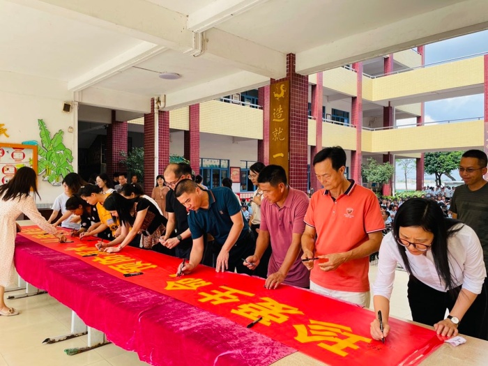 緊接著,全校師生有序走到“珍愛生命,預(yù)防溺水,從我做起”橫幅前,莊重地簽下自己的名字。