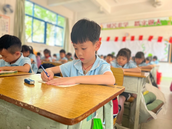 本次活動全員參與,各班級利用書法課的時間進行比賽。一、二年級用鉛筆,三至六年級用黑色簽字筆,比賽內(nèi)容是各年級下冊語文課本上的古詩詞。比賽現(xiàn)場,同學們個個坐姿端正,握筆規(guī)范,神情專注,用心書寫每一個筆畫、每一個漢字。作品有的端莊秀氣,運筆熟練、提按分明,有的舒展大方,運筆流暢,行款整齊,充分體現(xiàn)了同學們對中國古詩詞的熱愛,也展現(xiàn)了硬筆書法的無窮魅力。賽后,書法老師對比賽作品進行了評比,各班分別評出一、二等獎各3名,三等獎4名學生。
