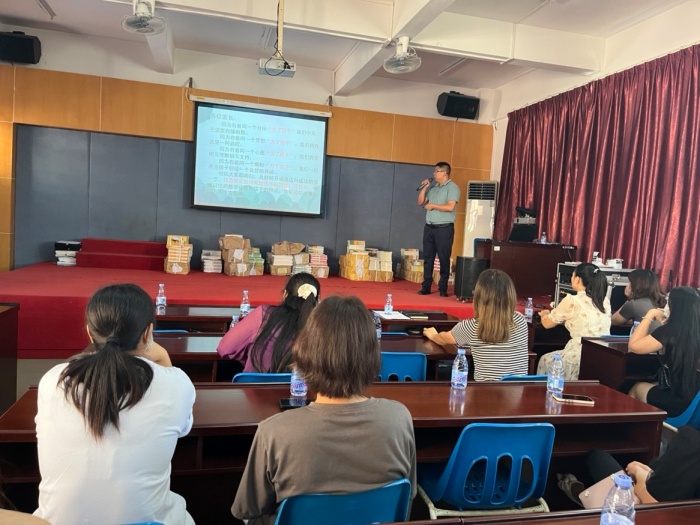 為幫助家長(zhǎng)們樹(shù)立正確的教育思想和觀念,指導(dǎo)家長(zhǎng)為少年兒童身心健康發(fā)展創(chuàng)造良好的家庭環(huán)境,提高家庭教育能力,形成學(xué)校、家庭、社會(huì)教育合力,促進(jìn)學(xué)生綜合素質(zhì)的全面提高。在新生培訓(xùn)的同時(shí),家長(zhǎng)們也正在學(xué)校報(bào)告廳參加培訓(xùn)。培訓(xùn)活動(dòng)由大隊(duì)輔導(dǎo)員林靜敏主持。活動(dòng)中,首先是管德豐校長(zhǎng)介紹了學(xué)校的基本概況、辦學(xué)理念、辦學(xué)特色等,并肯定了家長(zhǎng)們的素質(zhì)越來(lái)越高,讓家長(zhǎng)們多提升自我,才能更好地教育好自己的孩子。同時(shí),還給家長(zhǎng)們推介了許多的學(xué)習(xí)媒介、平臺(tái),提高家長(zhǎng)們的教育水平,加強(qiáng)家校合作。接著,德育主任梁廣平主任以“愛(ài)、智慧、陪伴”為主題,通過(guò)生動(dòng)的語(yǔ)言、真實(shí)的事例,給家長(zhǎng)們闡述了如何更好地用愛(ài)、智慧陪伴孩子的健康成長(zhǎng),同時(shí)就家長(zhǎng)們?nèi)绾螢楹⒆舆x擇興趣培養(yǎng)做了科學(xué)的指引。隨后,教務(wù)處梁漢輝主任從一年級(jí)新生的身心特點(diǎn)出發(fā),給家長(zhǎng)們分析了從幼兒園到小學(xué)學(xué)習(xí)生活的一些不同,強(qiáng)調(diào)新生入學(xué)后家長(zhǎng)需重視的一些問(wèn)題,包括關(guān)注孩子的情緒、學(xué)習(xí)習(xí)慣等,家長(zhǎng)要具備科學(xué)的教育觀念,做好家長(zhǎng)要做的事情,為孩子們順利過(guò)渡到小學(xué)生活做好充分的準(zhǔn)備。最后,由負(fù)責(zé)學(xué)校安全工作的陶嘉駿副主任給家長(zhǎng)們進(jìn)行培訓(xùn),陶主任從防疫的要求、防溺水安全、交通安全、食品安全等進(jìn)行講述。整個(gè)培訓(xùn)過(guò)程,家長(zhǎng)們聽(tīng)得很專注,關(guān)注到重要信息時(shí)還不忘拍照或在備忘錄中留記。