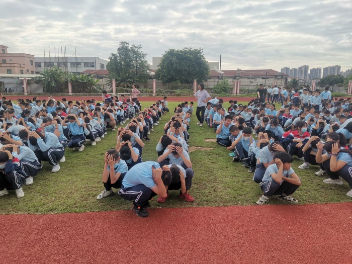 演練后,梁麗鴻校長進(jìn)行本次防震演練的總結(jié),指出本次逃生演練絕大多數(shù)同學(xué)能有序、迅速到達(dá)安全地帶,并能在逃生過程中用正確的方式保護(hù)自己頭部,但也有少數(shù)同學(xué)不重視演練,防范意識不夠強,安全意識不夠高,需要加強教育,同時,也向同學(xué)們普及了臺風(fēng)、暴雨等極端天氣的各級預(yù)警知識。