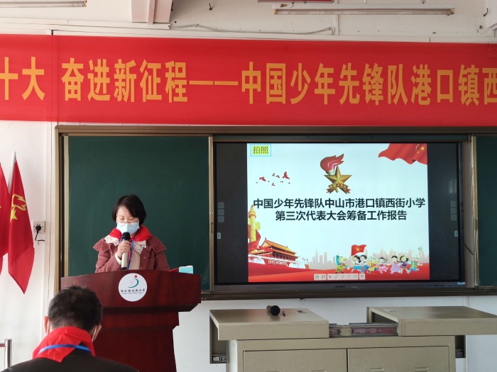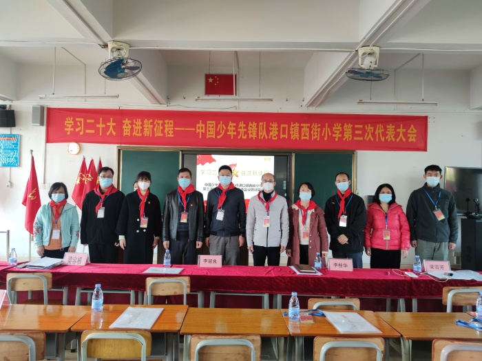 2022年12月12日下午,中國少年先鋒隊港口鎮(zhèn)西街小學第三次代表大會在學校二樓多媒體室順利召開,分別由副大隊長黃欣琪、大隊輔導員潘英華老師主持。港口鎮(zhèn)團委李冠良書記,西街小學梁容根校長、李桂華副校長、梁偉佳主任、梁雪芳副主任、大隊輔導員潘英華老師及陳環(huán)等8名中隊輔導員代表,家委理事會會長吳麗芬、家委代表占愛炳、蔣凡出席了本次少代會。