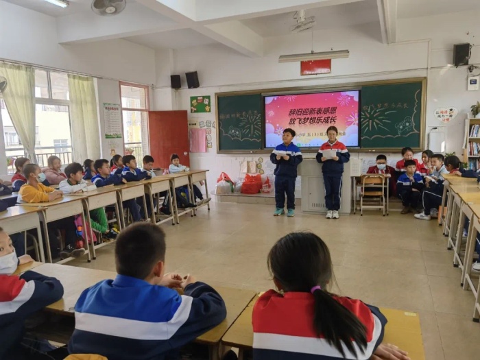 2021年12月31日下午,以班級為單位開展的“辭舊迎新表感恩 放飛夢想樂成長”主題班會活動正開展得如火如荼。各班正副班主任充分發(fā)揮聰明才智,圍繞主題,組織了豐富多彩的辭舊迎新主題活動?;蛑v述元旦的來歷,或暢談新年的祝愿,或組織驚喜禮物交換會,或用畫筆畫下新年美好祝福,或由班級學生自己設計、組織新年聯(lián)歡會,學生熱情高漲,積極參與,充分發(fā)揮自己的特長,武術、朗誦、小品、游戲等節(jié)目一一亮相,現(xiàn)場精彩紛呈,笑聲連連。