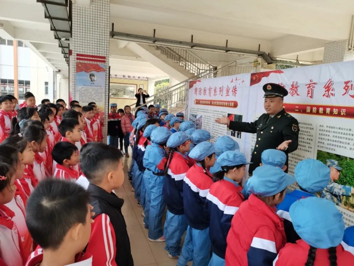 主題班會課上,各位班主任通過播放圖片、視頻,對國家公祭日設(shè)立的意義進(jìn)行深入淺出的講解,引導(dǎo)隊(duì)員深刻了解“國家公祭日”的內(nèi)涵,激勵隊(duì)員勿忘國恥,振興中華。而在學(xué)校的國防宣傳欄前,賀部長更是領(lǐng)著孩子們講國防知識、講祖國的軍事的日益強(qiáng)大、講自己的軍旅故事……孩子們聽得很入迷,好奇地詢問著、分享著,當(dāng)兵衛(wèi)國的種子悄然發(fā)芽了!