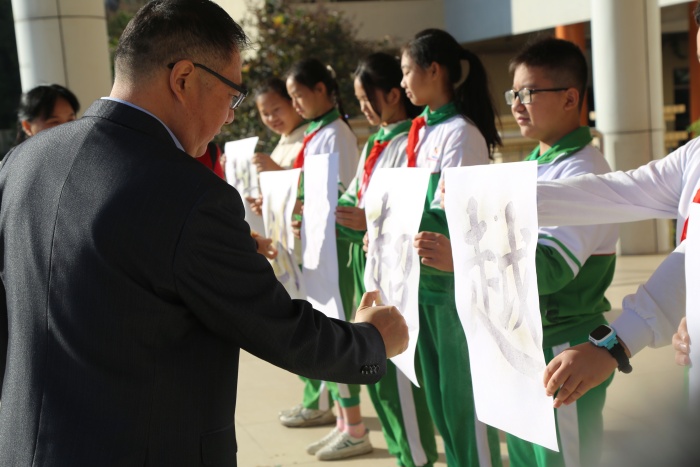 最后,李小健校長、梁文玲副校長、丘茶芬副校長和學生代表為大家?guī)砜茖W小魔術表演,只見他們將碘液噴灑在白紙上,白紙上立刻顯現(xiàn)出本屆科技節(jié)主題“科技創(chuàng)新,超越夢想”,場下的師生紛紛贊嘆!此時,李校長鄭重宣布港口鎮(zhèn)中心小學2021學年度科技節(jié)正式啟動。