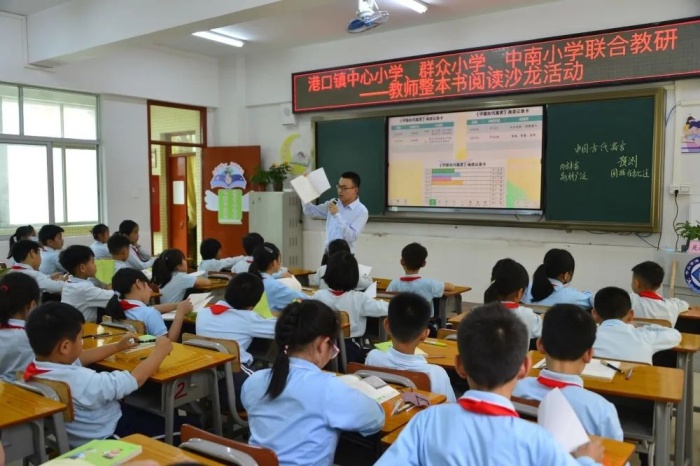 鳥欲高飛先振翅,人求上進先讀書。為進一步落實新《義務教育語文課程標準》關于“整本書閱讀”教學的要求,提高教師整本書閱讀教學技能,2023年3月9日下午,港口鎮(zhèn)中心小學、群眾小學、中南小學三校聯(lián)合在中心小學教研東室舉行整本書閱讀項目化學習教學研討活動,港口鎮(zhèn)各兄弟學校語文教師代表參加本次活動。