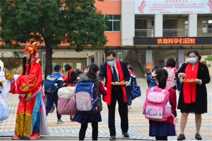 2月6日上午,港口鎮(zhèn)中心小學(xué)到處充滿歡聲笑語。笑容可掬的值日老師,和藹可敬的行政團隊站在校門口迎接中心小學(xué)學(xué)子歸來。看,正門口獅隊在鑼鼓聲中跳躍騰飛,吉祥兔蹦蹦跳跳、親切問好,財神爺眉開眼笑、恭賀新禧,真熱鬧呀!老師們正在給孩子們派發(fā)新年利是糖呢,那甜蜜的糖里寄托著老師對學(xué)生的殷殷期盼和衷心的祝福。整個校園經(jīng)過精心布置,展示孩子們充實、愉快的年俗活動和孩子們的新年愿望。