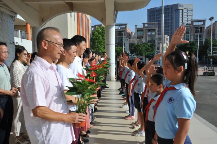 早上八點(diǎn)整,慶?;顒釉谟茡P(yáng)的樂聲中拉開了帷幕。首先校長李小健致辭,向全體教師送上節(jié)日的祝福,勉勵教師做好教育工作,為社會培育時代新人。隨后,五年級少先隊(duì)員代表向全體老師獻(xiàn)花,將最真摯的祝福親手遞交到老師們手中,表達(dá)著對老師的感恩之情。接著,教師代表帶來詩朗誦《崇高的事業(yè)》,鏗鏘有力的語言,訴說著教師職業(yè)的平凡與神圣;教師旗袍秀則更彰顯著新時代教師的風(fēng)采,表達(dá)著傳統(tǒng)與現(xiàn)代交織的獨(dú)特魅力。最后德育主任梁銀英為全體師生做節(jié)前安全教育,希望全體師生過一個風(fēng)清氣正、健康祥和的節(jié)日。
