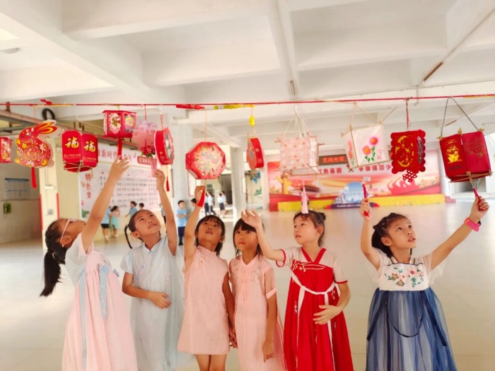 全校還開展“花燈映明月,情意蘊(yùn)中秋”巧制燈籠活動,一個個燈籠高掛風(fēng)雨活動區(qū),成了校園一道美麗風(fēng)景線;各中隊(duì)利用隊(duì)課開展“吾愛吾師,共度佳節(jié)”為主題的主題隊(duì)會,隊(duì)員們通過詩歌朗誦,講故事,唱歌等多種形式,共同回憶與老師之間難忘的故事,暢談中秋佳話,分享美好。少先隊(duì)員們通過拍視頻的方式為老師送上節(jié)日的祝福。校園到處充滿深深師生情,洋溢著濃厚節(jié)日氣氛。此外,學(xué)校還倡導(dǎo)少先隊(duì)員與長輩一起過中秋、吃月餅,為長輩送祝福,拍下溫馨的時刻。