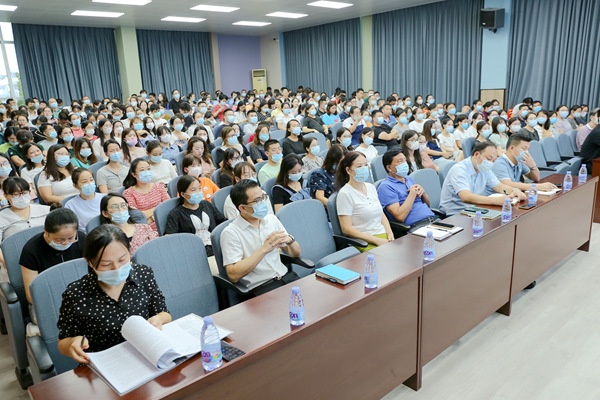 張校長認(rèn)為博文今天的成就源于博文奮斗者,博文需要每一個(gè)人去奮斗,唯有奮斗,博文才會(huì)有更加美好的未來。面對(duì)新形勢(shì),張校長提出新學(xué)年學(xué)校工作思路:以思想建設(shè)為先導(dǎo),以質(zhì)量建設(shè)為中心,以校訓(xùn)教育為動(dòng)力,以三個(gè)從嚴(yán)為抓手,以奮斗者為本,堅(jiān)持自我反思,促進(jìn)學(xué)校高質(zhì)量發(fā)展。張校長強(qiáng)調(diào),要貫徹黨的教育方針政策,落實(shí)立德樹人的根本任務(wù),奉行學(xué)校辦學(xué)理念思想,認(rèn)真貫徹“三種意識(shí)”的工作思想,強(qiáng)化“三個(gè)第一”的工作作風(fēng),落實(shí)“三個(gè)從嚴(yán)”的工作方法;希望各位教師在日常工作中不斷自我反思、自我探索、自我成長,做一名奮斗者共同促進(jìn)學(xué)校辦學(xué)水平和質(zhì)量進(jìn)一步提升。