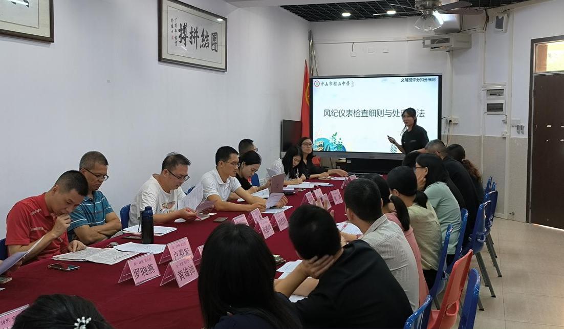 會(huì)議期間,還邀請(qǐng)了校團(tuán)委學(xué)生會(huì)指導(dǎo)老師吳雪萱解讀文明班評(píng)分扣分相關(guān)細(xì)則,吳老師從風(fēng)紀(jì)儀表檢查細(xì)則與處理方法、衛(wèi)生檢查標(biāo)準(zhǔn)細(xì)則、飯?zhí)脵z查細(xì)則、禮儀站崗扣分細(xì)則和黑板報(bào)評(píng)分辦法等方面回應(yīng)班主任在學(xué)校日常管理方面的困惑和不解,助力班主任班級(jí)管理的有效提高。