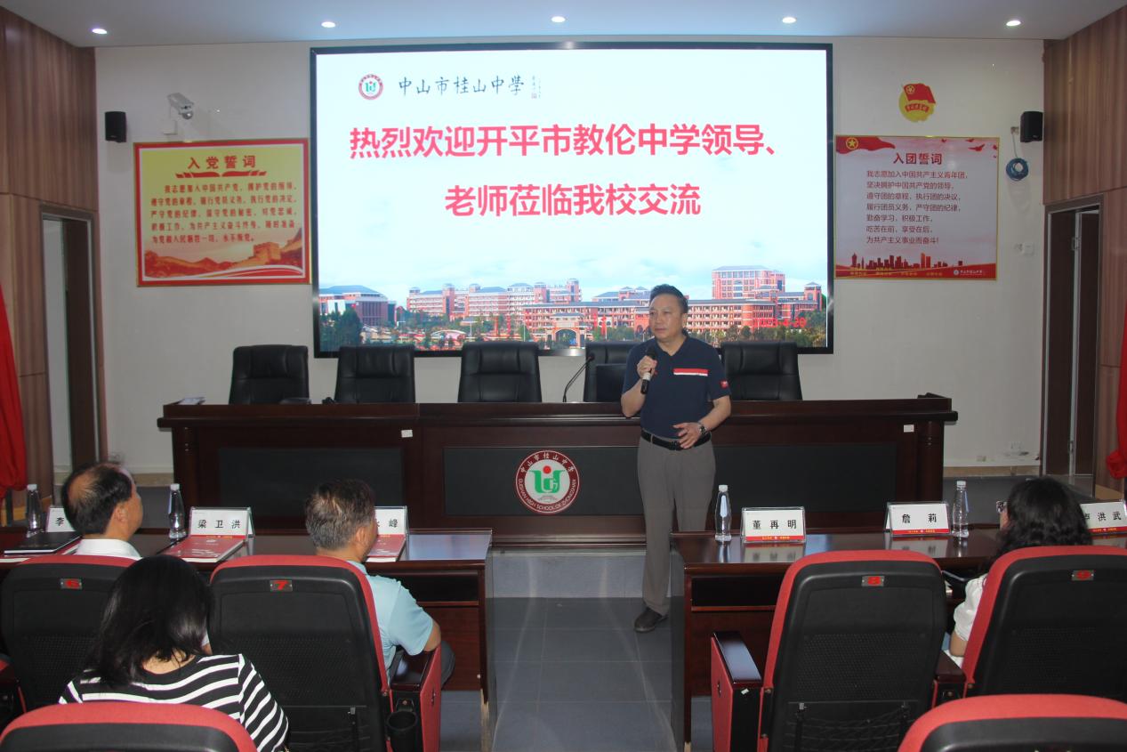 為加強校際交流,增進相互了解,促進德育工作高質(zhì)量開展,4月20日上午,開平市教倫中學(xué)周永峰校長、梁衛(wèi)洪副校長帶領(lǐng)德育隊伍一行四十余人蒞臨桂山參觀交流。