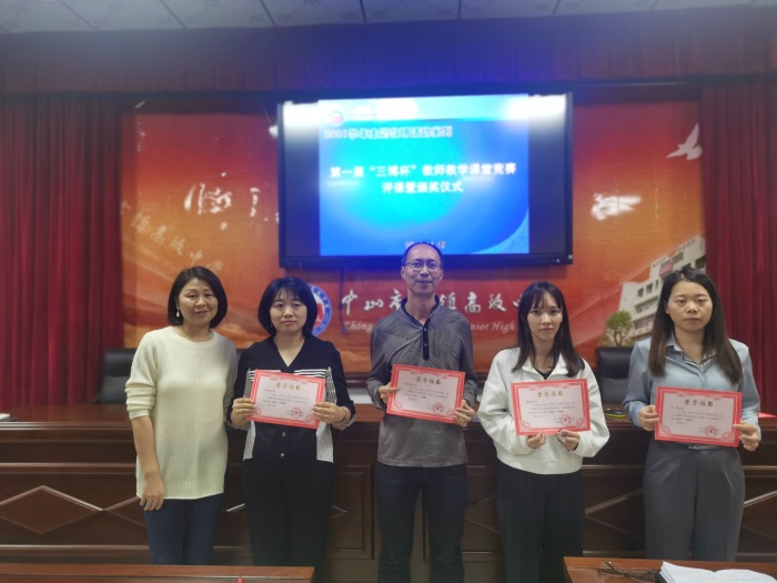 16位參賽教師以最飽滿的熱情投入到本次活動,給大家呈現(xiàn)了各具特色、各美其美的高效課堂展示。現(xiàn)場賽課環(huán)節(jié)結(jié)束后,教學處組織了評課活動暨頒獎儀式,學科評委立足“構(gòu)建深度學習課堂,發(fā)展學科核心素養(yǎng)”展開了專業(yè)點評。最后由教學處曾令雨主任為區(qū)汝徑老師等5名特等獎、5名一等獎、6名二等獎獲得者進行了頒獎。