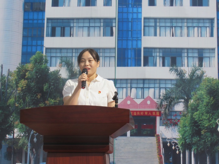 典禮由譚杰玉副校長主持。典禮分為三個部分:升旗儀式,校長王學(xué)成做《涵養(yǎng)“三氣”,未來可期》講話,教師代表葉麗群、學(xué)生代表李世邦分別做發(fā)言。全體師生出席活動。
