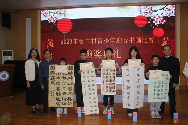 2023年2月11日早上,在春和景明之時(shí),曹二村第十四屆“我愛祖國,我愛我家”迎春書畫比賽在曹二小學(xué)隆重舉行。此次書畫比賽得到了各級領(lǐng)導(dǎo)的大力支持,本次比賽評委有曹二村村委委員、黨委委員湯有屏委員、曹二村關(guān)工委理事長區(qū)金泉同志、曹二小學(xué)校長邱波、德育處主任連雪梅、高凱旋老師、曾俊翔老師、黎夢春老師、李月嬌老師、劉逸凡老師、練海岸老師,并由湯有屏委員、區(qū)金泉理事長、邱波校長擔(dān)任頒獎嘉賓。