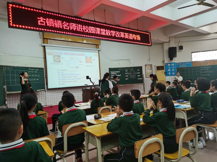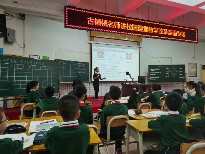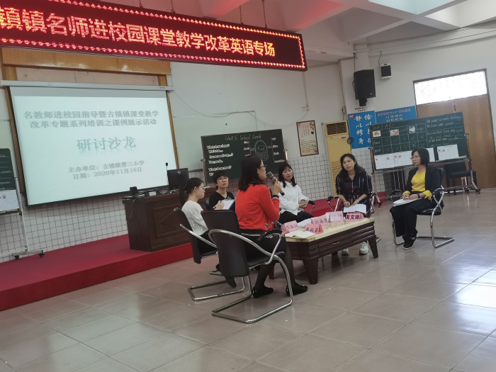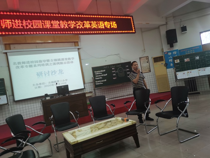 2020年11月16日早上8點,古鎮(zhèn)鎮(zhèn)曹三小學(xué)英語科組開展“名教師進(jìn)校園暨古鎮(zhèn)鎮(zhèn)課堂教學(xué)改革”專題教研活動,古鎮(zhèn)鎮(zhèn)全體小學(xué)英語老師觀摩。這次活動分為三個議程,首先由黃文娣老師和黃金喬老師就如何落實小組合作學(xué)習(xí)上展示課,資深黃文娣老師執(zhí)教六年級Unit5 <A Circus in the Park>詞匯課,而年輕教師黃金喬老師執(zhí)教五年級Unit5 <School lunch>詞匯課。接著許市中學(xué)劉海霞和古鎮(zhèn)莫曉巧,蔡淑嫻老師進(jìn)行評課,最后由鎮(zhèn)教育事務(wù)指導(dǎo)中心陳和添主任做專題培訓(xùn)指導(dǎo)。