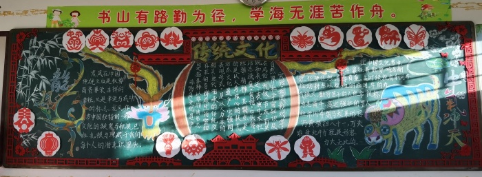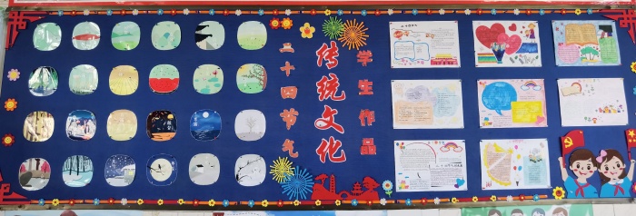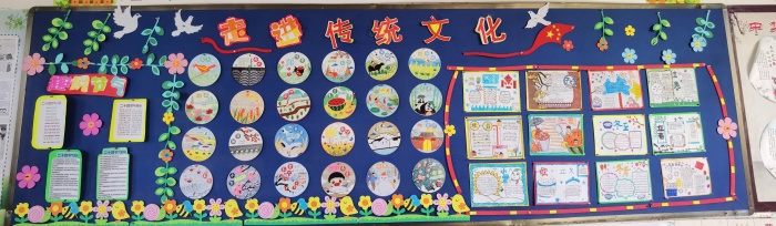 活動期間,參賽班級緊緊圍繞著“走進中華優(yōu)秀傳統(tǒng)文化”的活動主題,班主任組織學(xué)生們根據(jù)中華傳統(tǒng)文化中經(jīng)典元素自主設(shè)計、制作教室板報,有的以京劇為主題,有的以愛國故事為背景,有的以二十四節(jié)氣為主題,既有愛國主義成語詩詞,也有典故及時代新解,學(xué)生享受并體會傳統(tǒng)文化魅力給予的熏陶、感染和教育,感受民族自豪感與家國情懷,以此更好的促進了班級文化建設(shè),讓中華傳統(tǒng)文化在班級中生根發(fā)芽。