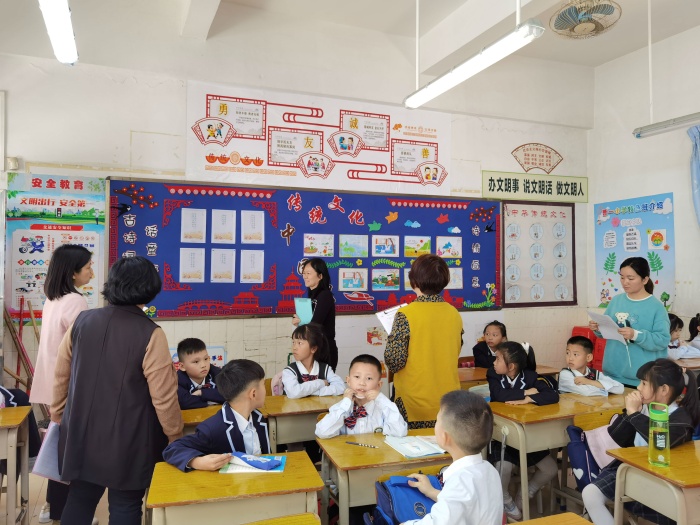 由學(xué)校行政班子、年級組長、部分資深老師組成的檢查小組對各班級的班級文化建設(shè)進行檢查評比。檢查小組從黑板報設(shè)計、班級傳統(tǒng)文化氛圍營造等方面進行量化評分。