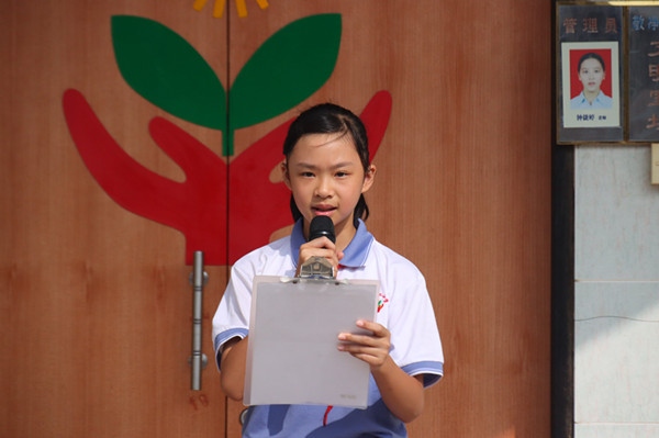 9月10日大課間,五3班的林倩婷同學(xué)代表全體同學(xué)向全校老師獻(xiàn)詞。她將無私奉獻(xiàn)的老師比作人梯、園丁、春蠶和蠟燭,言語(yǔ)中流露著對(duì)老師的感恩之情。她滿懷深情的話語(yǔ),飽含激情的言辭感染了在場(chǎng)的每一位師生。