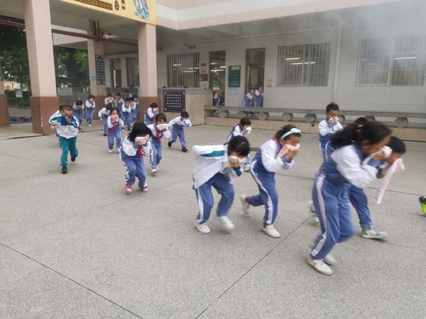 11月17日下午4:15,學(xué)校廣播突然響起發(fā)生了地震的警報(bào),各班主任指揮學(xué)生迅速鉆到課桌下,同學(xué)們雙手護(hù)頭,以正確的應(yīng)急避險(xiǎn)姿勢(shì)應(yīng)對(duì)地震災(zāi)害。地震警報(bào)解除后,廣播再次響起發(fā)生火災(zāi)的警報(bào),廣播傳出“同學(xué)們,學(xué)校一年級(jí)區(qū)域不幸發(fā)生了火災(zāi),請(qǐng)同學(xué)們迅速逃生,保護(hù)好自己,注意安全有序……”,全體教師快速進(jìn)入各自的崗位,在班主任的指引下,學(xué)生從教室有序逃出,他們用手帕、毛巾等捂住口鼻,彎著腰,或扶著墻壁或跟著人群,沿著班級(jí)的逃生路線有序撤離到學(xué)校操場(chǎng)的安全地帶。