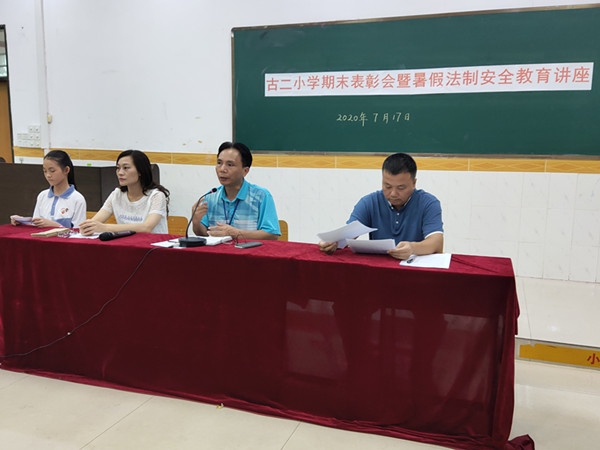 為表彰先進,樹立典型,激勵師生在下學(xué)期中取長補短,努力學(xué)習(xí),爭取更大進步,以及進行暑假法制安全教育及布置暑假德育實踐任務(wù)。2020年月7月17日下午,古鎮(zhèn)鎮(zhèn)古二小學(xué)舉行了2019學(xué)年度第二學(xué)期期末總結(jié)表彰大會暨暑假法制安全教育講座,同學(xué)們帶著愉快輕松地心情參加了本學(xué)期的期末總結(jié)大會。本次活動采取釘釘直播的形式進行,全體師生參加。