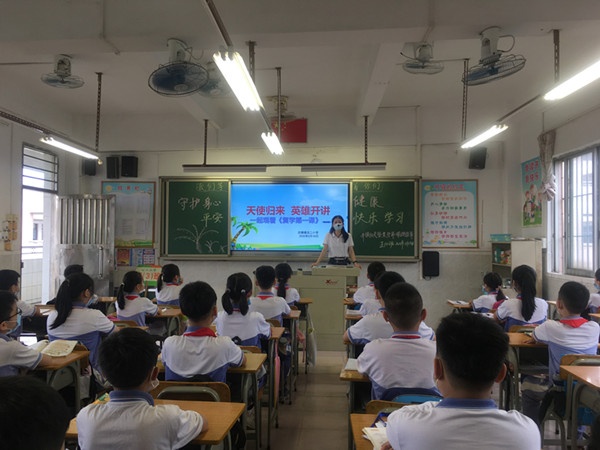 今天的班會課,安排了豐富實用的多項內(nèi)容,其中一項是中山市開播的以“天使歸來 英雄開講”的《復(fù)學(xué)第一課》。在視頻中由賴艷霞老師擔(dān)當(dāng)主講人,以“天使歸來,英雄開講”為主題,邀請中山市第三批援鄂醫(yī)療隊隊長、中山市人民醫(yī)院南朗分院副主任醫(yī)師陳智偉;中山市第一批援鄂醫(yī)療隊成員、中山市三鄉(xiāng)醫(yī)院主管護(hù)師魏翠云,現(xiàn)場講述中山醫(yī)療隊馳援湖北的驚心動魄的經(jīng)歷。