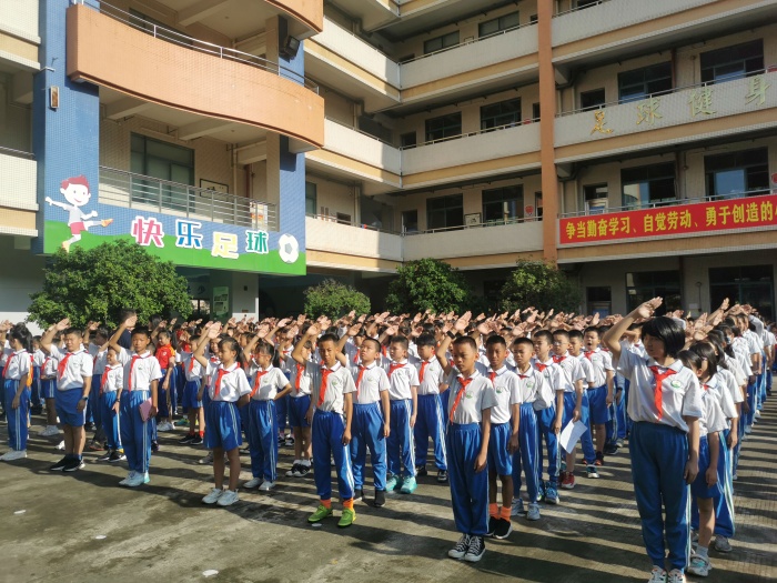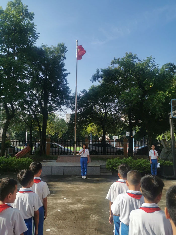 “起來(lái),不愿做奴隸的人們……”活動(dòng)在全體師生高亢雄壯、催人奮進(jìn)的歌聲中拉開序幕,少先隊(duì)員們面向鮮艷的五星紅旗莊嚴(yán)敬禮,目光隨著冉冉升起的國(guó)旗緩緩移動(dòng)……升旗儀式上,少先隊(duì)員代表陳妍宇同學(xué)進(jìn)行了主題為“紅領(lǐng)巾,我心中的永恒的顏色”的國(guó)旗下演講,倡議全體少先隊(duì)員認(rèn)真學(xué)習(xí)、踏實(shí)做人、鍛煉體魄、掌握生活的本領(lǐng),讓紅領(lǐng)巾成為我們心中永恒的顏色。最后,學(xué)校少先隊(duì)輔導(dǎo)員助理梁麗霞老師與隊(duì)員們共同重溫了建隊(duì)日的來(lái)歷,回顧了少先隊(duì)組織所走過(guò)的歷程,對(duì)少先隊(duì)員們提出了殷切的希望與要求,號(hào)召少先隊(duì)員們時(shí)刻準(zhǔn)備著,為中華民族偉大復(fù)興而努力進(jìn)取。