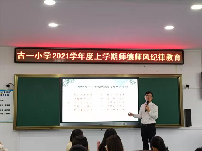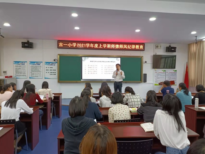為進(jìn)一步增強(qiáng)全體教師的責(zé)任感、使命感、榮譽(yù)感,規(guī)范職業(yè)行為,明確師德底線,引導(dǎo)廣大教師努力成為有理想信念、有道德情操、有扎實(shí)學(xué)識、有仁愛之心的“四有”好老師,11月2日,古一小學(xué)開展了2021學(xué)年度上學(xué)期師德師風(fēng)紀(jì)律教育。