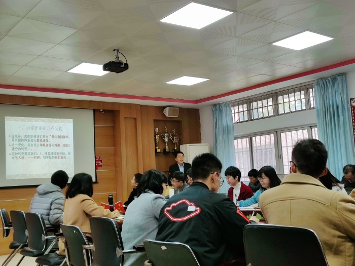 職稱評定是對教師職業(yè)能力的認(rèn)可,也可以充分激勵教師上進(jìn),對教育事業(yè)的發(fā)展起積極作用。本次會議中,劉冠賢副校長從職稱評定的變化、申報要求以及職稱評定建議等方面進(jìn)行了詳細(xì)說明。劉校長強(qiáng)調(diào),老師們需要認(rèn)真對待職稱評定工作。在平時的工作中對照指標(biāo)找差距,關(guān)注自身的過程積累,重視學(xué)校層面的評優(yōu)評先活動。建議大家在課堂教學(xué)中加強(qiáng)與同事和學(xué)生之間的溝通,在師德評議和表彰考核方面以更高的標(biāo)準(zhǔn)要求自己。通過研究課題、校本課程、撰寫論文、參加教學(xué)比賽等方式來提高自己的專業(yè)能力。同時也提醒老師們?yōu)樽约捍罱ê闷脚_,制定好三年或五年發(fā)展規(guī)劃。