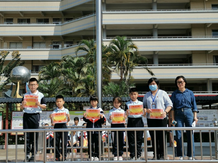 鄧主任進(jìn)行活動總結(jié)后,各班學(xué)生代表接過副校長麥彩英手中的獎狀,此時,校園里響起熱烈的掌聲,同學(xué)們都為獲獎的班級加油、鼓勁。