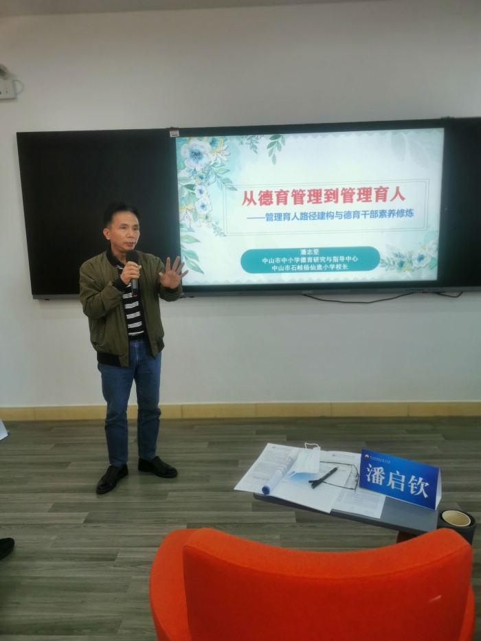培訓之初,潘啟欽校長先作了簡短的開班儀式講話,希望老師們轉換角色,提高認識,認真聆聽,學有所獲。開班儀式后,培訓學習正式拉開序幕。首先為大家?guī)淼谝恢v的是來自中山市石歧楊仙逸小學的潘志堅校長,潘校長給學員分享了《從德育管理到管理育人》專題講座。他具體從德育管理、管理育人與素養(yǎng)修煉三個方面展開論述,為學員們詳細介紹了德育工作在教學中的重要性,也為學員提供了一系列具有操作性的意見。潘校長對于德育的經驗娓娓道來,學員們用心聆聽,度過了一個充實的上午。