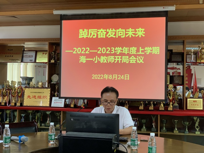 接著,各分管行政對學校各項工作進行部署,李培新副校長對學校教學工作進行部署,以點帶面,對全體教師在“雙減”背景下提高課堂效率、以研促教等提出了更高的要求。鄧苑甜主任布置德育安全工作,對新學期班主任隊伍建設、一年級新生入學要求、防溺水、防臺風等幾個方面進行了說明。賴名佩副主任對全體教師開展校園疫情防控培訓,強調(diào)開學臨近,要堅持把疫情防控放在各項工作首位,落實落細各項防控措施,堅決把好入校第一關。